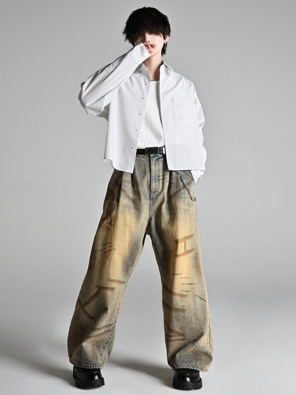 犬飼京 inukai keiのシャツ/ブラウス「Cropped Regular Collar Silhouette Shirt / クロップド・レギュラーカラー・シルエット・シャツ」を使ったコーディネート