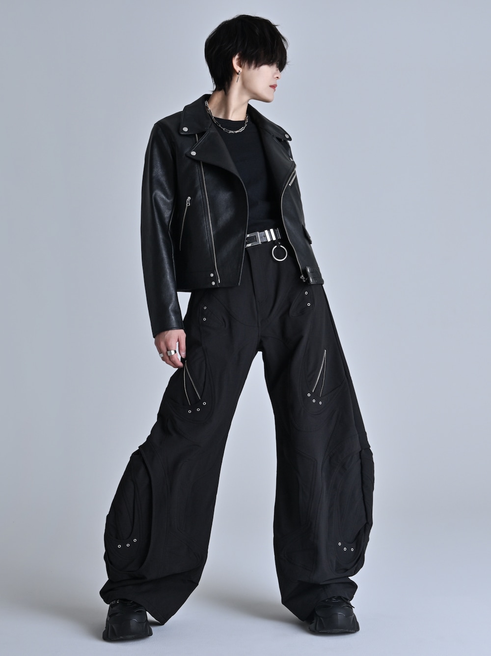 犬飼京 inukai keiのブルゾン「Cropped Double Riders Jacket / クロップド・ダブル・ライダース・ジャケット」を使ったコーディネート