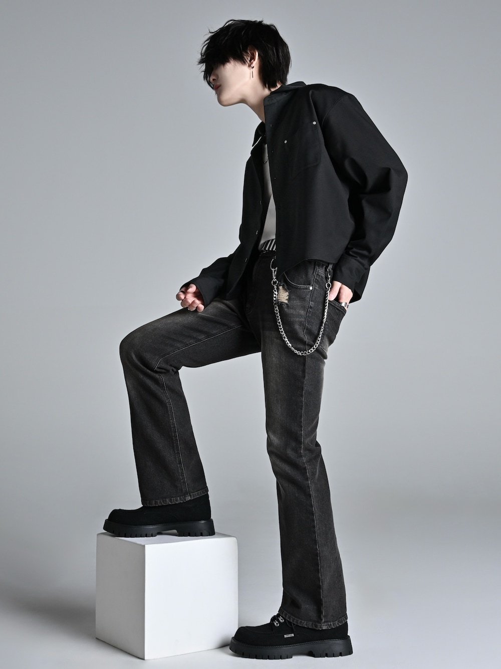 犬飼京 inukai keiのデニムパンツ「Hybrid Stretch Semi-Flare Denim / ハイブリッドストレッチセミフレアデニム」を使ったコーディネート