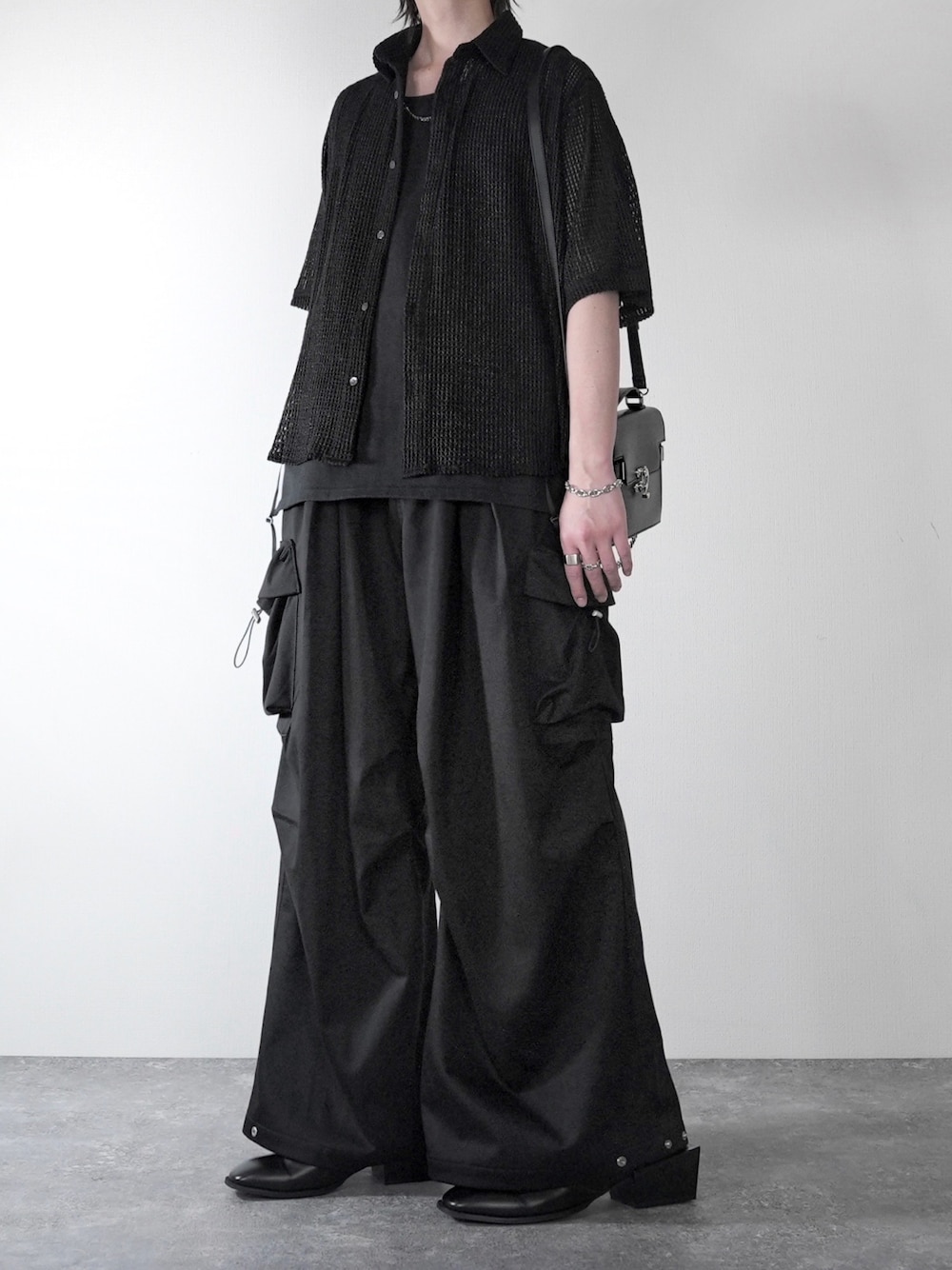 犬飼京 inukai keiのタンクトップ「3way mesh/cotton combination layered tank top(2枚セット) / 3ウェイメッシュ/コットンコンビネーションレイヤードタンクトップ(2枚セット)」を使ったコーディネート
