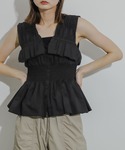 ご覧頂きありがとうございます。 新作アイテムを使ったキレイめスタイルです。 トップスはキュッとウエストが細く見えるペプラムシルエットです✨️ 夏はノースリーブ、秋はシアーのインナーをレイヤードして気回していただくのがおすすめです◎ ボトムスは、 チュールをレイヤードしてるかのようなパンツです♡ シャーリングデザインがポイントです!