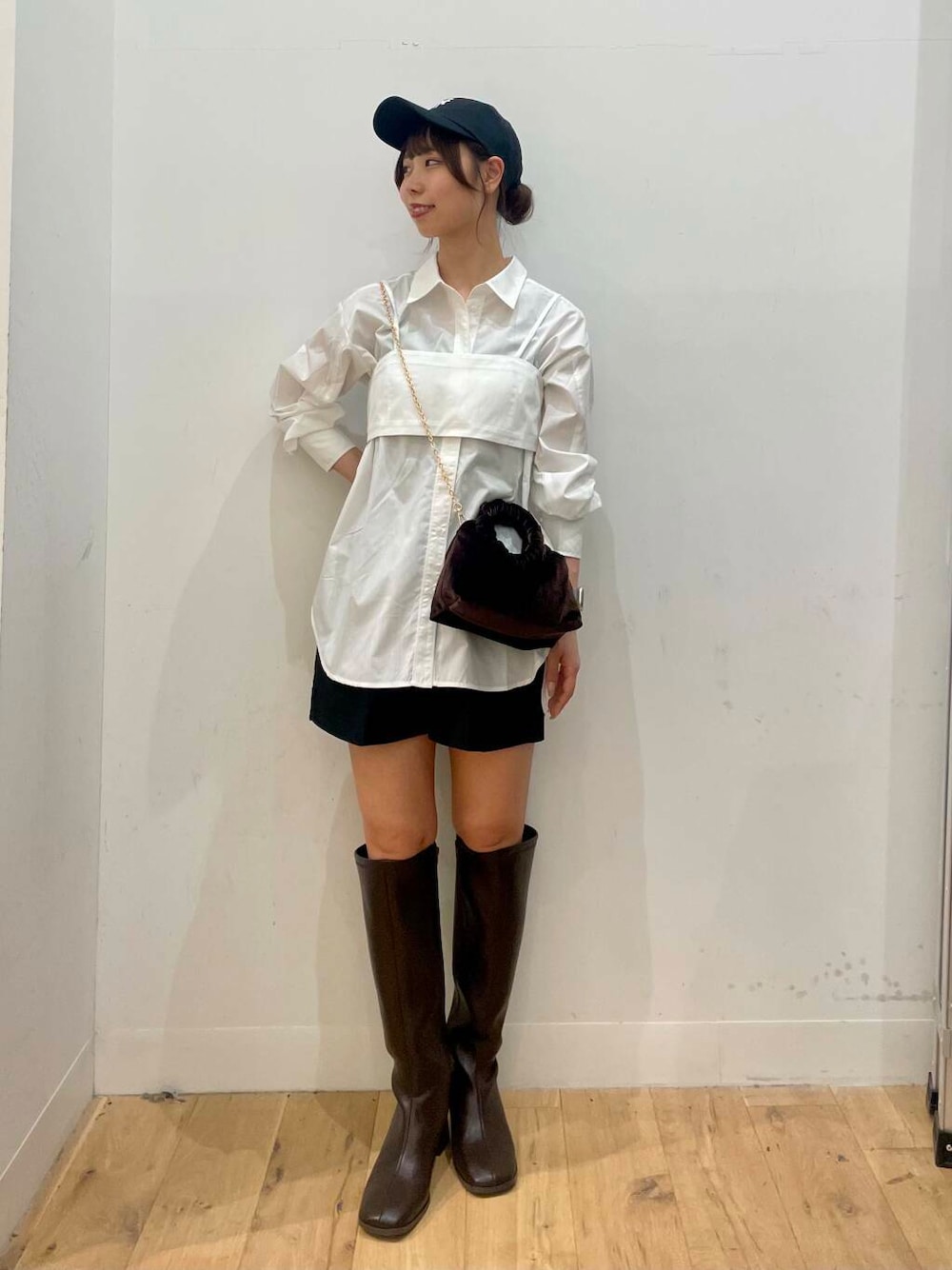 ご覧頂きありがとうございます。 着映え抜群◎新作シャツが入荷しました! チュニック丈でおしりまですっぽり隠れる丈感ですが同素材のビスチェのおかけで重心が上がって見えます◎ ビスチェがレイヤードされた、シンプルながらお洒落みえ抜群のアイテムです♡ 今回はミニ丈とロングブーツ合わせでスタイリングしました♡