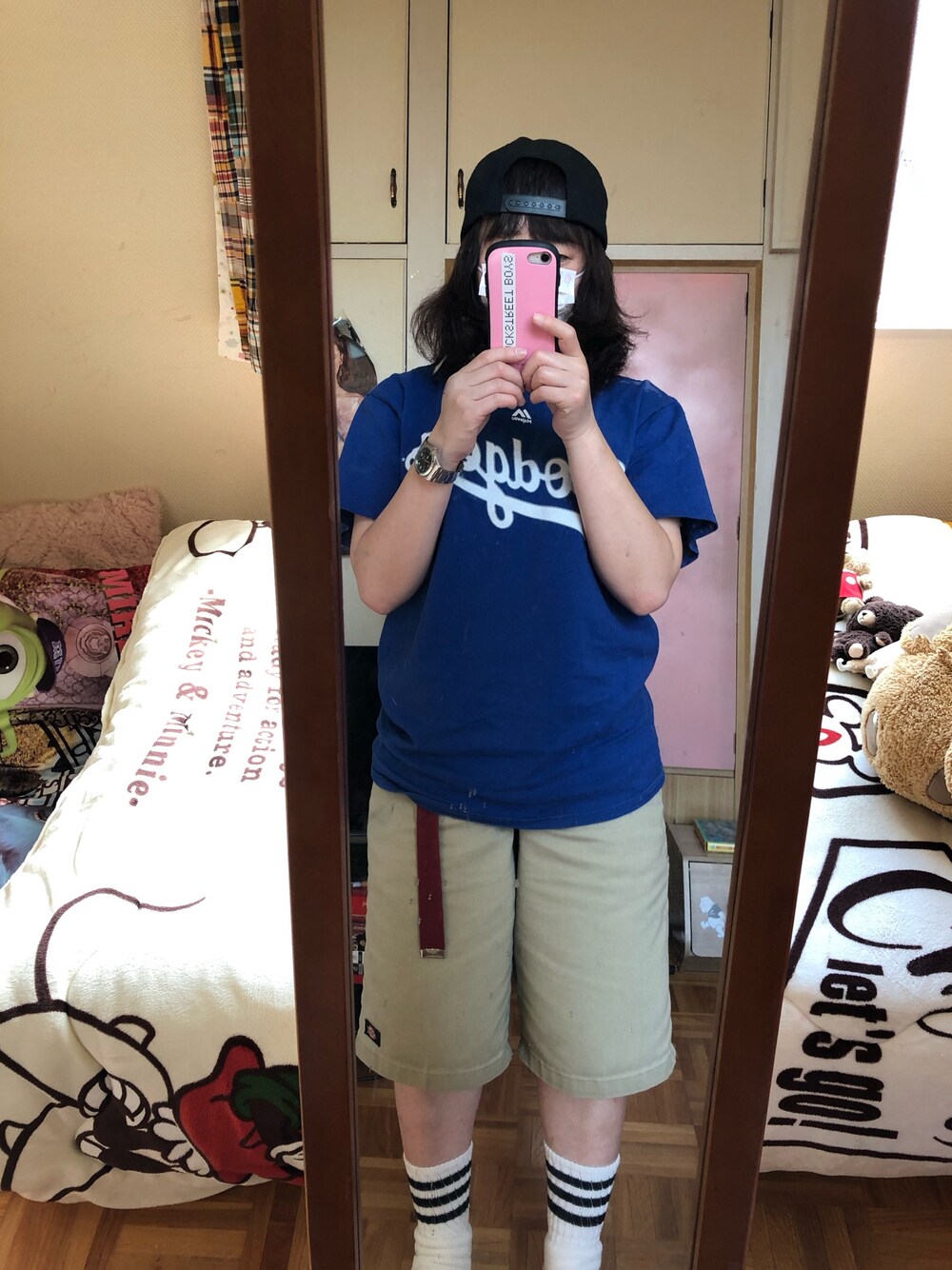 こんにちは!Mymelosのguitar vocalです。今日は、US パンクスタイルにDodgersのTシャツを合わせてみました。いかがでしょうか?ちなみに私はAngelsのファンだったりもします。笑😉にゃんにゃん❤️