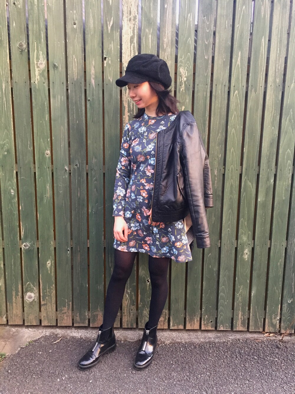 暖かくなってきたけど、風が強かったり、寒かったり、、、革ジャンの中がモコモコだから春にピッタリ!? ワンピースも花柄で春らしい🤔