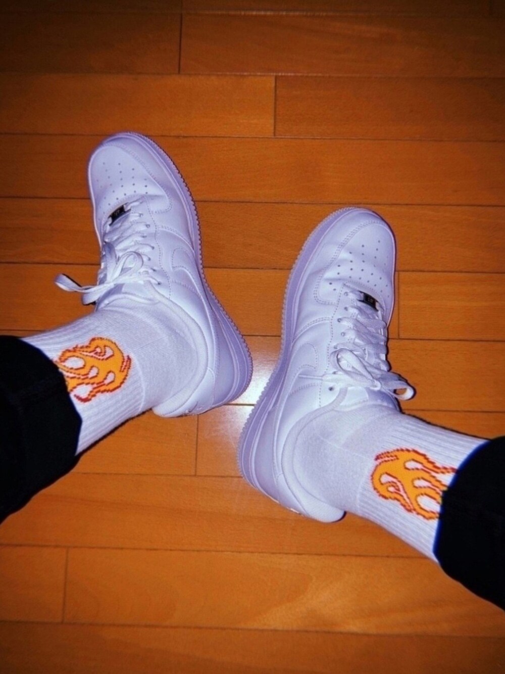 ご覧いただきありがとうございます🌞 定番であり頂点であるエアフォースワンとファイヤーソックスを合わせて履いてみました🔥 ソックスで他の人と差をつける!!