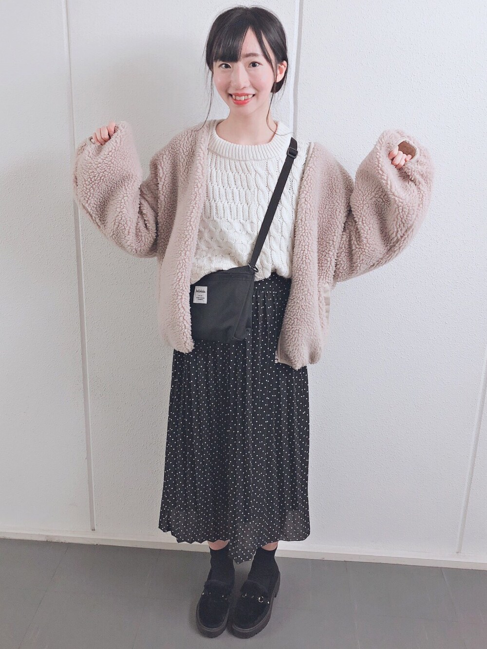 全体に優しい感じでまとめた🌷 白ニットがすごく暖かい 冬こそ明るい色の服で 過ごしたい〜🤔