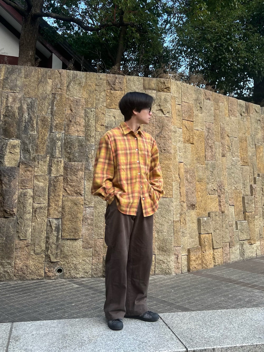 シャツって基本オーバーな作りになってて、 低身長の人にとっては正直デカい。というのが本音だと思う。 そんなときは、下2つのボタンを開けてあげてウエストラインをチラッと見せるスタイリングがおすすめ👌🏻 丈とパンツの境界線=脚の長さに繋がってくるからパンツの面積を少し広げてあげるだけで印象ばだいぶ変わってくるから是非参考にしてね^_^👍🏻
