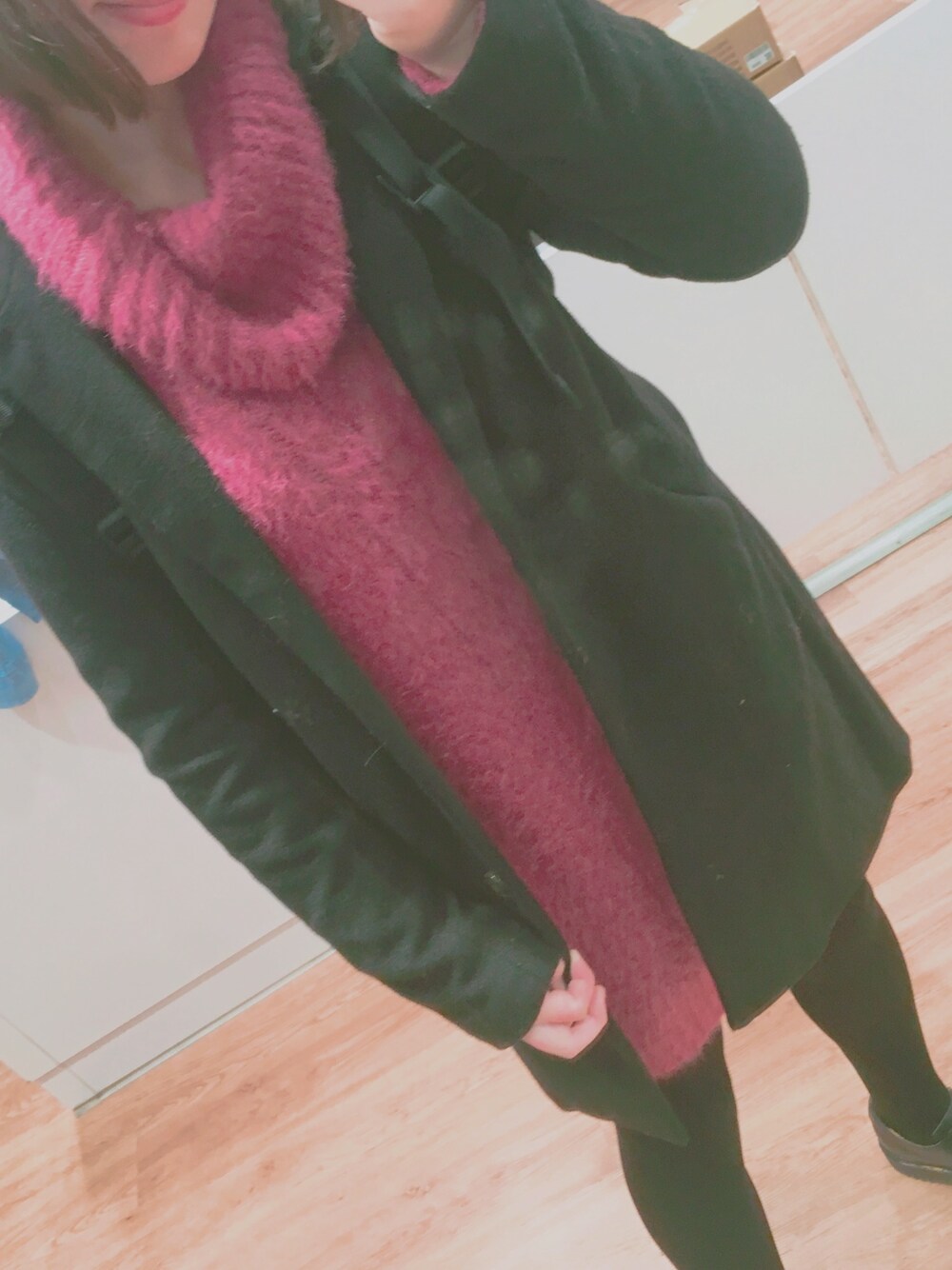 北海道はもう40センチくらい積もっています、冬がきちゃいましたよ😩😩😩 シャギーニットワンピースは可愛いプラム色です そして髪ばっさりしちゃいますた🤤