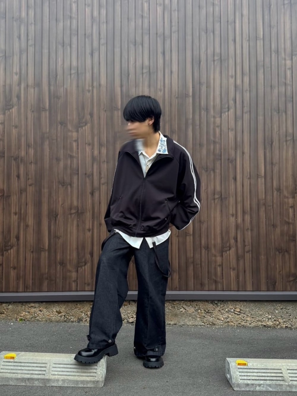 トラックジャケット✖️シャツのコーデ👕 シャツのレイヤードの感じも個人的におしゃれな気がする…!