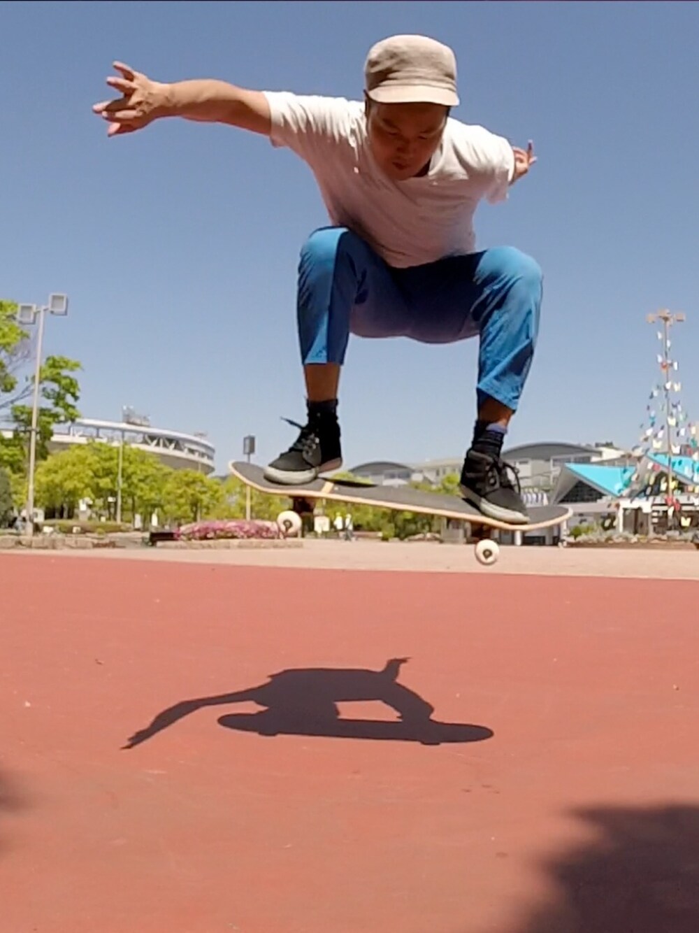 オーリー。 右足と左足をもっと曲げないと高くは飛べない。