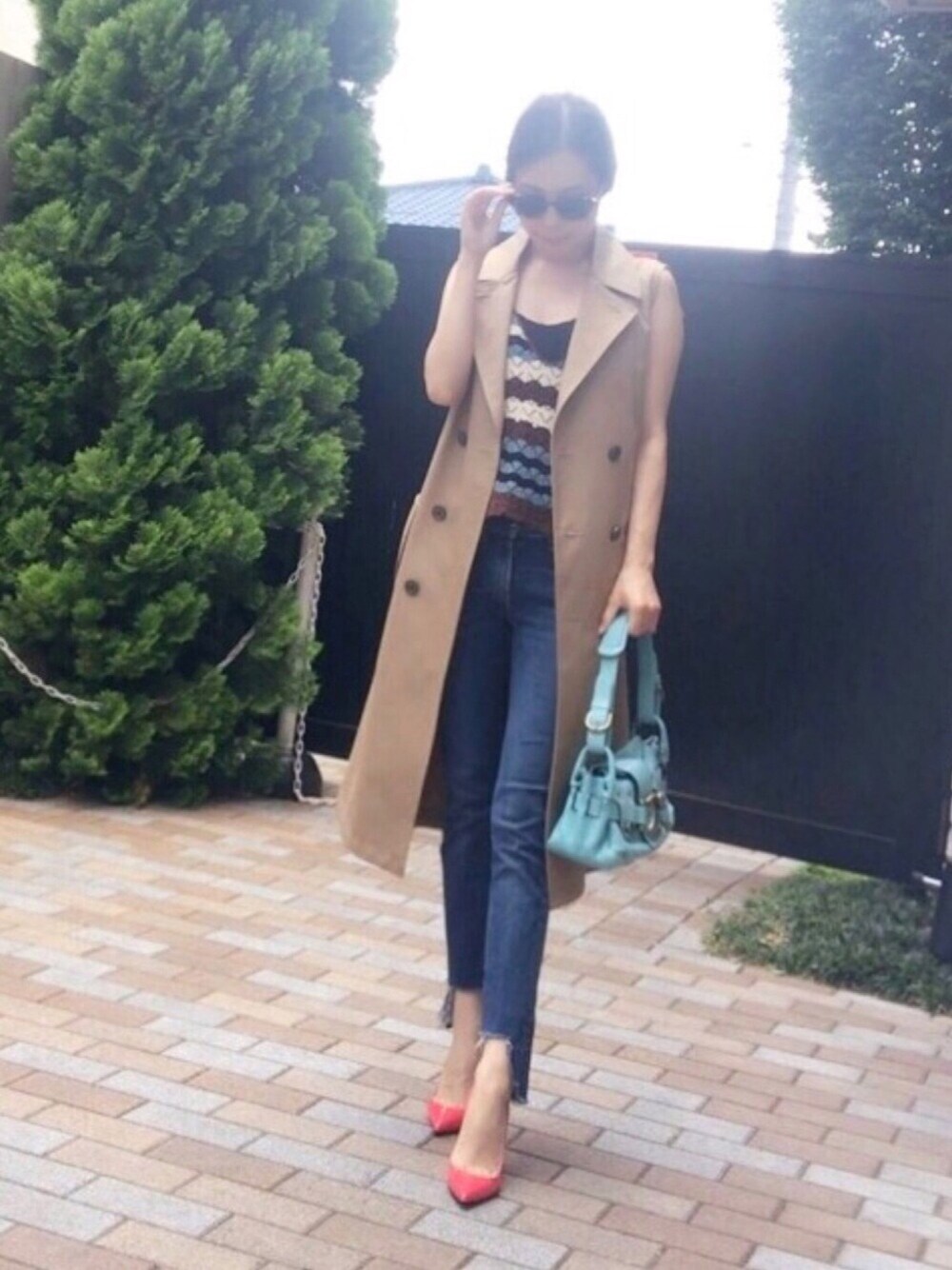 あと、二頭身😩😩伸びたい💭 153センチのちびのちんちくりんなりのカッコつけ🤢🤢 . オレンジ色の入った暖色系のお靴は👠 アースカラーに仲介してもらうとブルーのバッグとも合う?なんて😍 昔ママに、お洋服の色の組み合わせは三色よ!ってこと いつも思い出しながらコーデして楽しんでるん😍