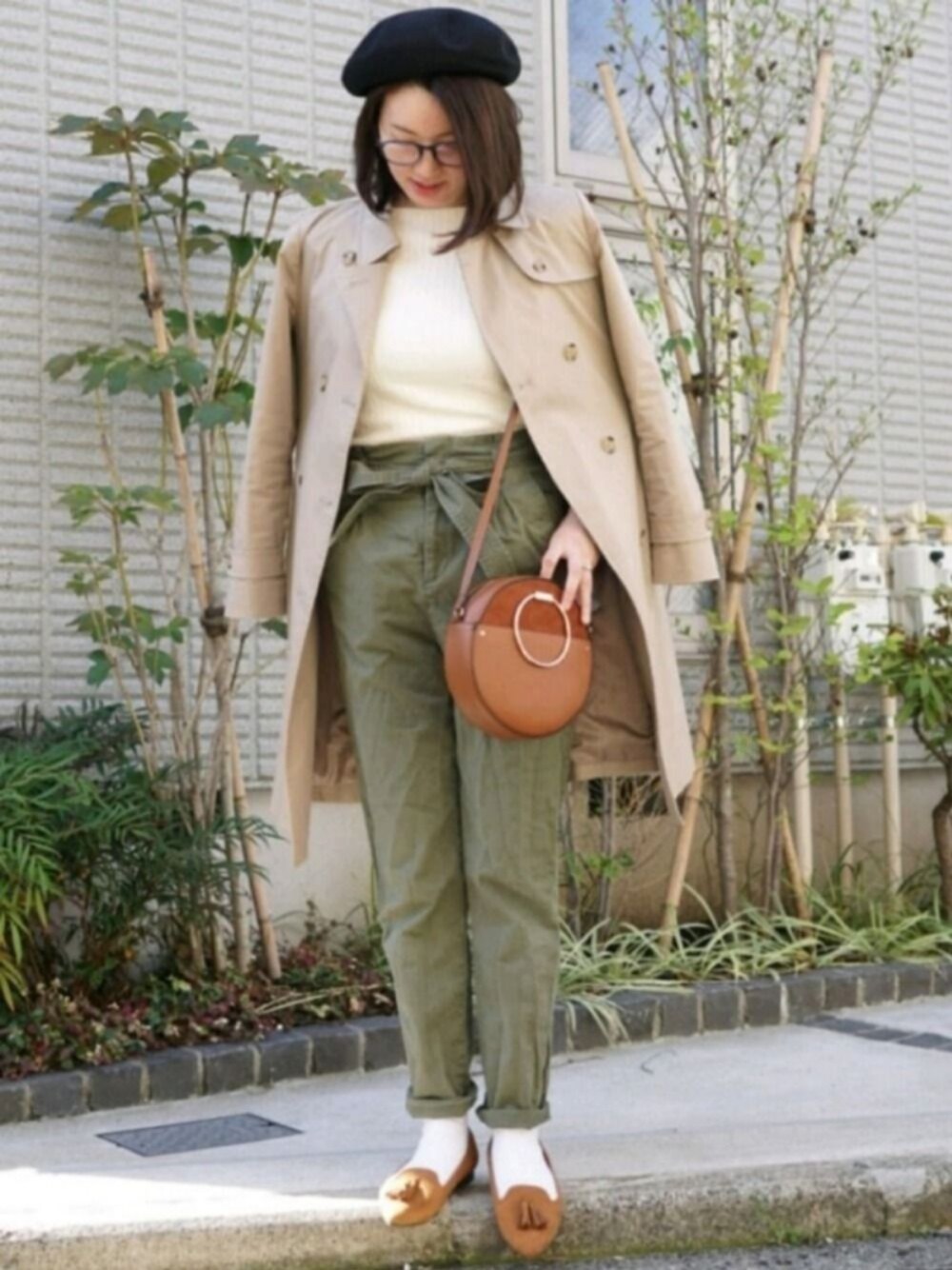 白、茶、カーキ、黒で✨春っぽくない配色❤️ H&Mのカーキのカーゴ👖はウエストゆったりが良かったので、大きめサイズ😉ちょっとしわくちゃだったね💦