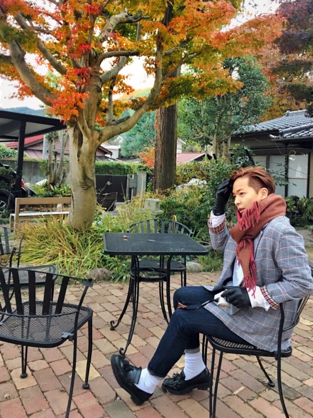 グレー系のテーラードジャケットを着用したメンズの冬コーディネートの1枚目の写真