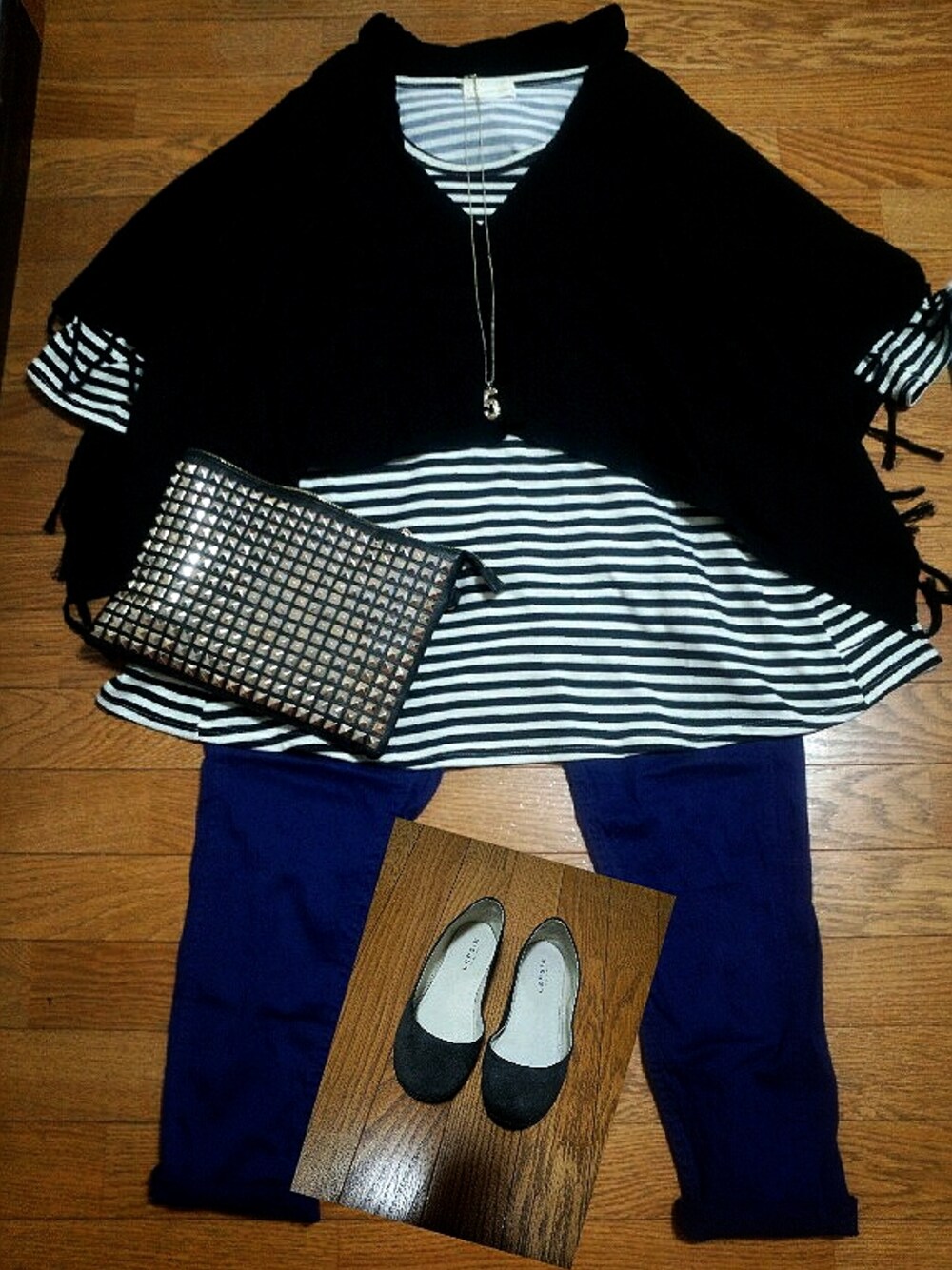 グレー系のパンプス、ゴールド系のクラッチバッグ、ブラック系のその他トップスを着用したレディースの春コーディネートの1枚目の写真