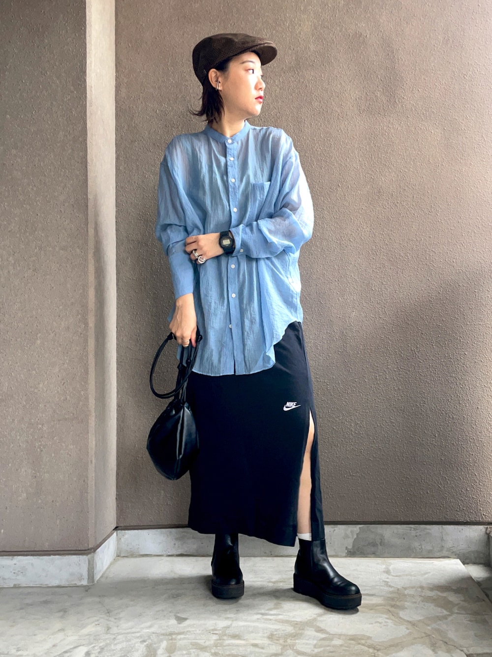 たむらヘプバーンのシャツ/ブラウス「カラーシアービッグカフスシャツ」を使ったコーディネート