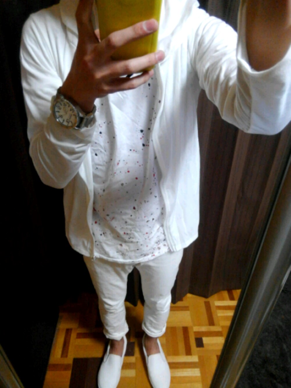 去年閃いてだだハマりした白コーデ。 今みると思ってたよりだせーな(笑) けど、我が道を行く様な格好とか行動が好きw