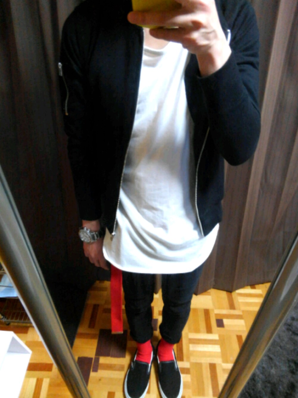 赤が目立っていいかなーコーデ。 早く薄着したいなー