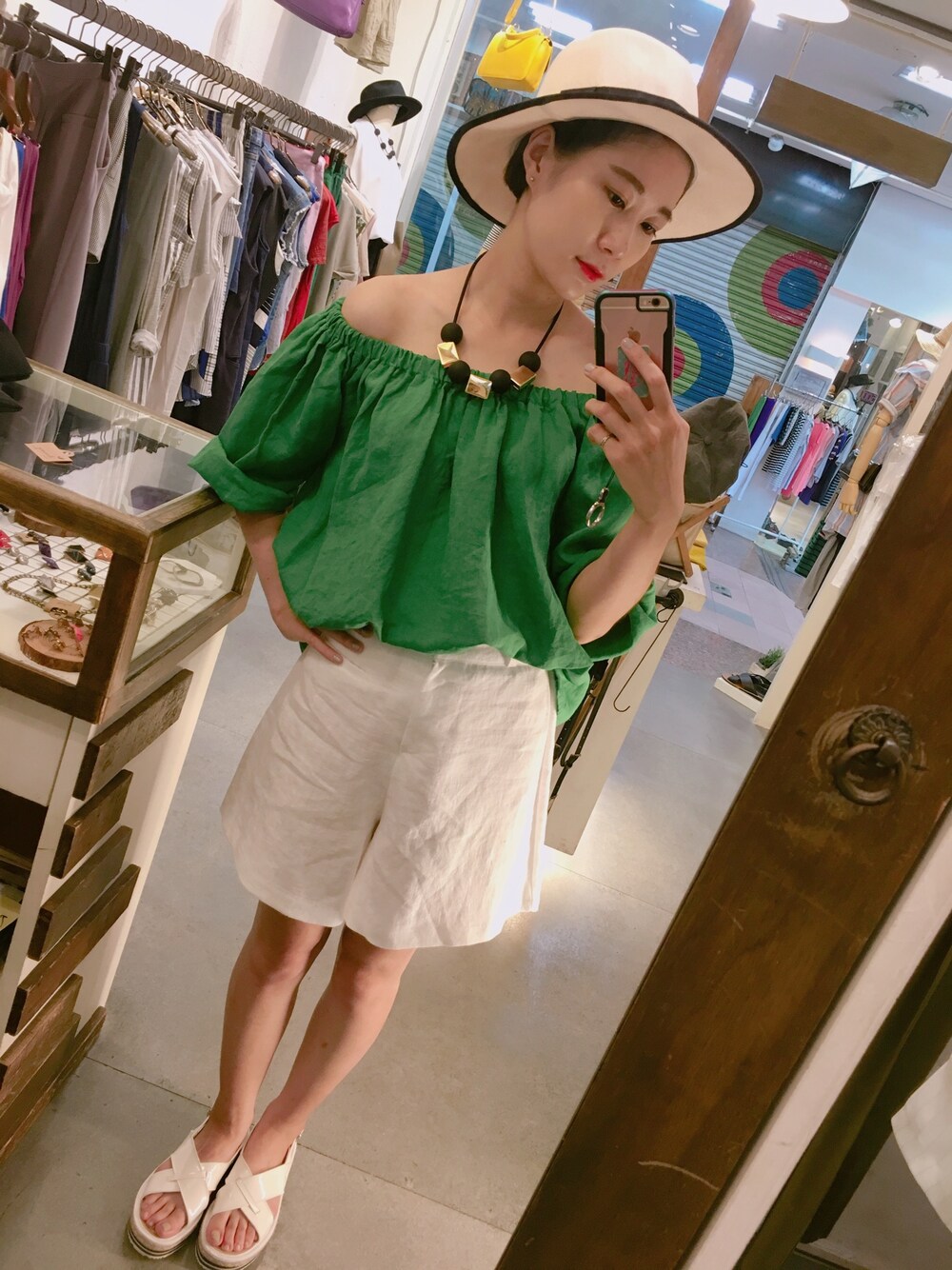 グリーン系のその他トップスを着用したレディースの夏コーディネートの1枚目の写真