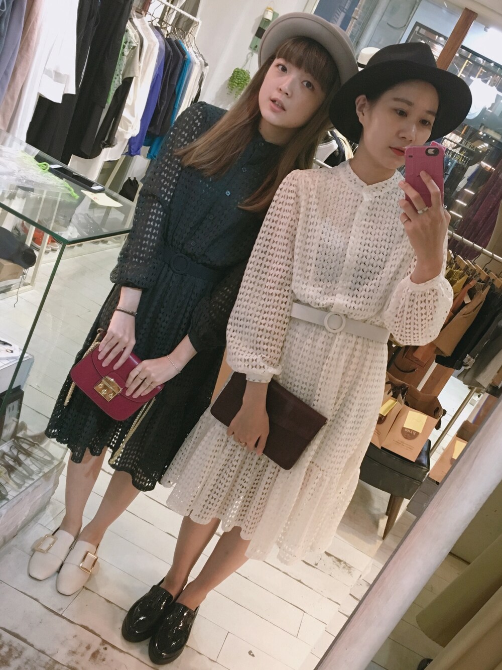 ホワイト系のドレスを着用したレディースの秋コーディネートの1枚目の写真