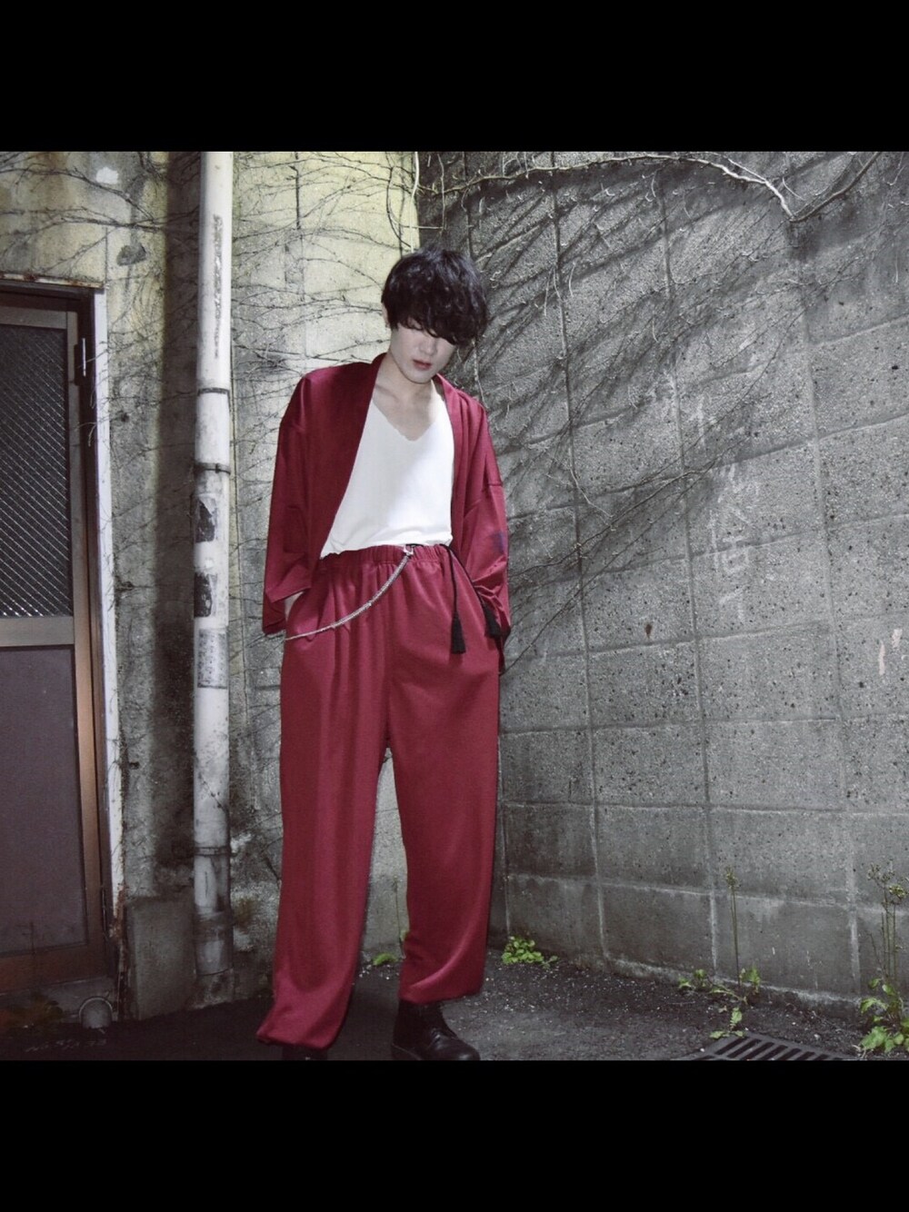 真赤な羽織りのセットアップ