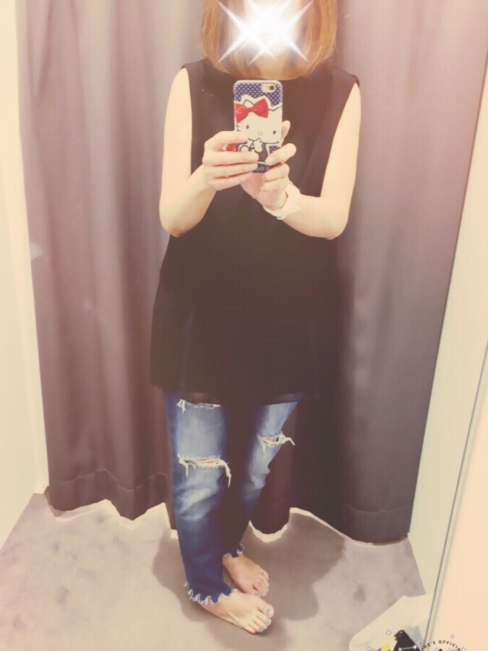 UNIQLOでセール品だった プリーツブラウス XLしかなくてちとデカイかなー😂 ジーパンはGUの クラッシュスキニー アンクル 私が履くと スキニーでもアンクルでもないわー😅😅