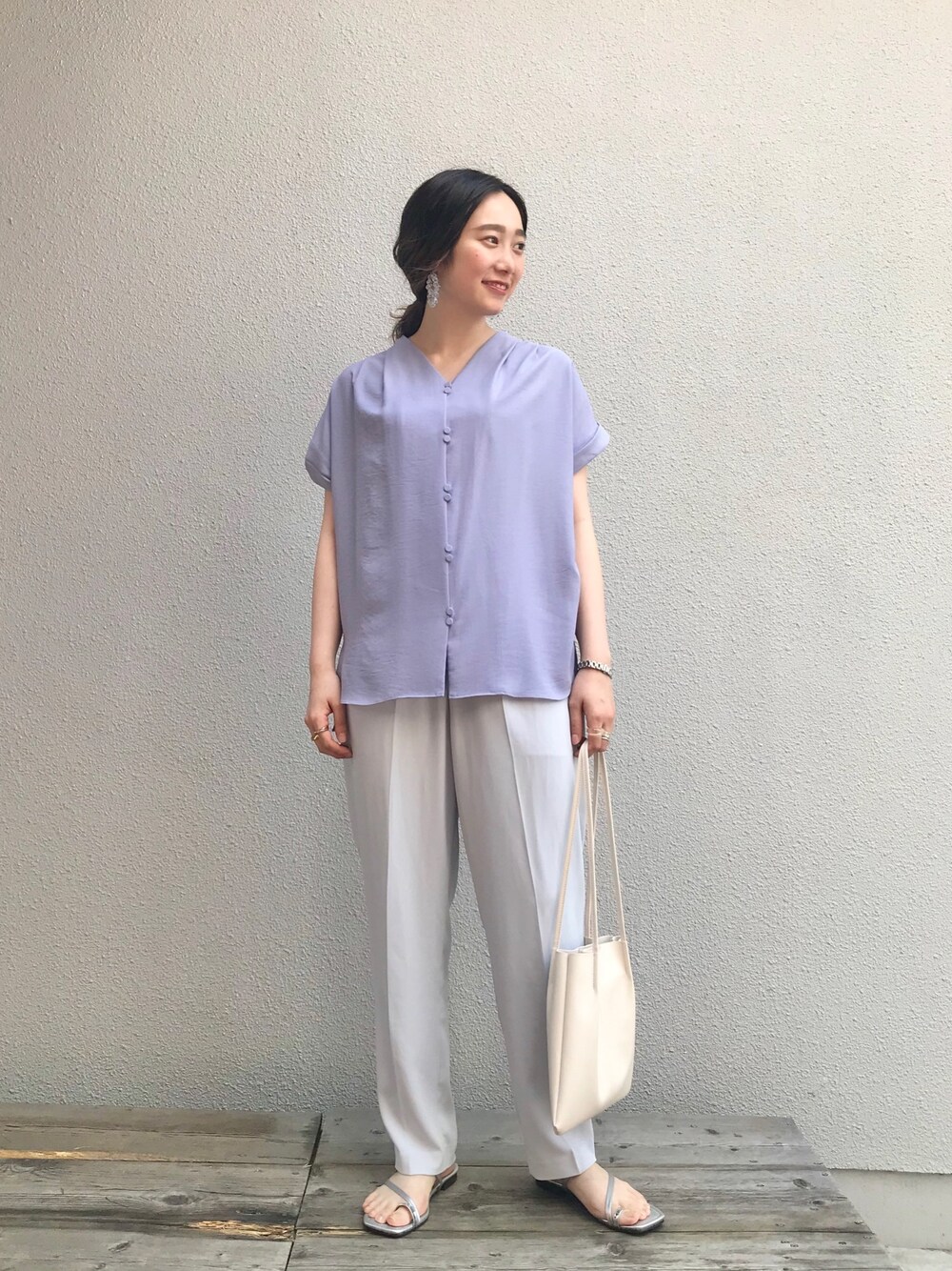 きれいめスタイリングです🐠 前開きブラウスはボタンを開けて 羽織としても使っていただけます! サラッとした生地で着心地軽やか♪ 肩が落ちてるデザインなので二の腕を気にせず着れました☺️ baycrews storeでもご購入いただけます🍧 公式instagram▷@bcstock.jp つるinstagram▷@tpl_07 ▷▷▷ follow me🌻🌻🌻