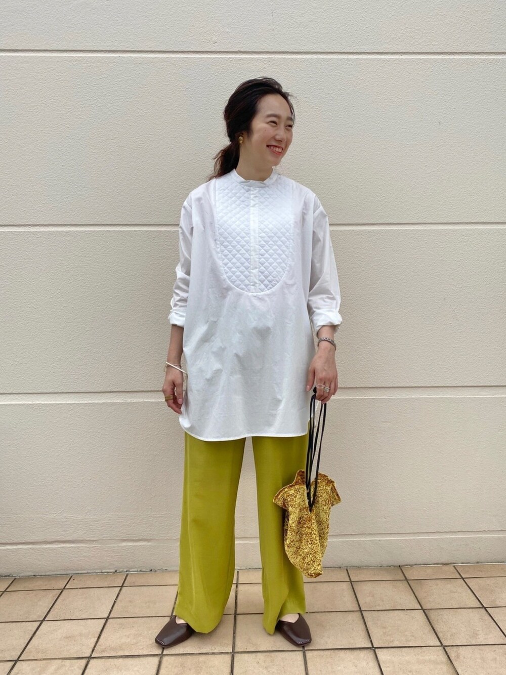 胸元のキルティングが一層オシャレに🌞 今年トレンドのバンドカラーシャツ! 白シャツも秋らしいカラーパンツと合わせれば季節感が出て◎ baycrews storeでもご購入いただけます🍭 プロフィールからsnapへ▷▷▷👢👜 公式instagram▷@bcstock.jp つるinstagram▷@tpl_07 ▷▷▷ follow me🍁🍁🍁