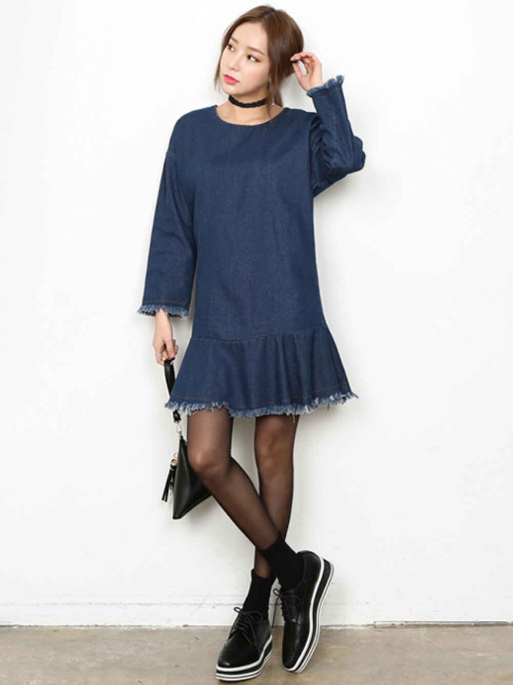 ヘイドのワンピース「シャーリングデニムワンピース」を使ったコーディネート