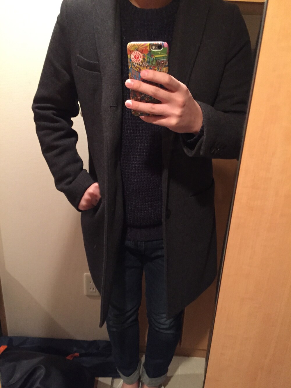 ライトオンで見つけたニットお気に入り! 大人っぽく見せるために薄めのデニムにチェスターコートを合わせました! 足元は写っていませんがNIKEのエアマックスです!