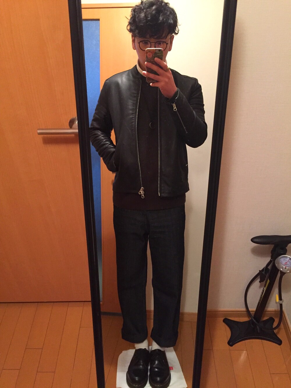 笑瓶のライダースジャケット「ラムレザーシングルライダース(HARE)」を使ったコーディネート