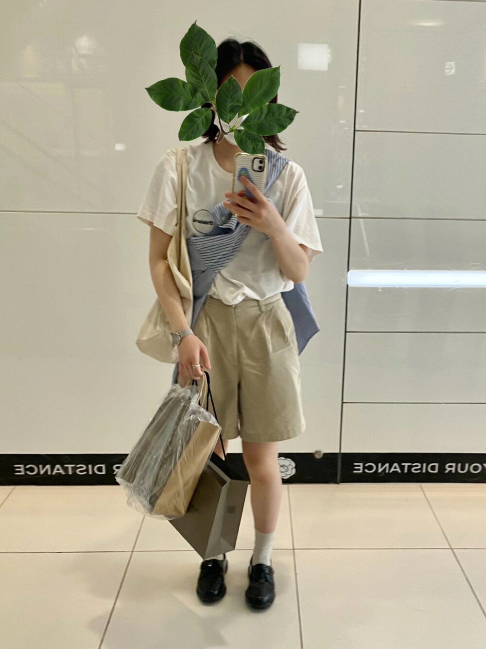 ハーフパンツにローファーはお気に入り 意外と合うのよ。 そんでストライプシャツ肩掛けは王道かわいい