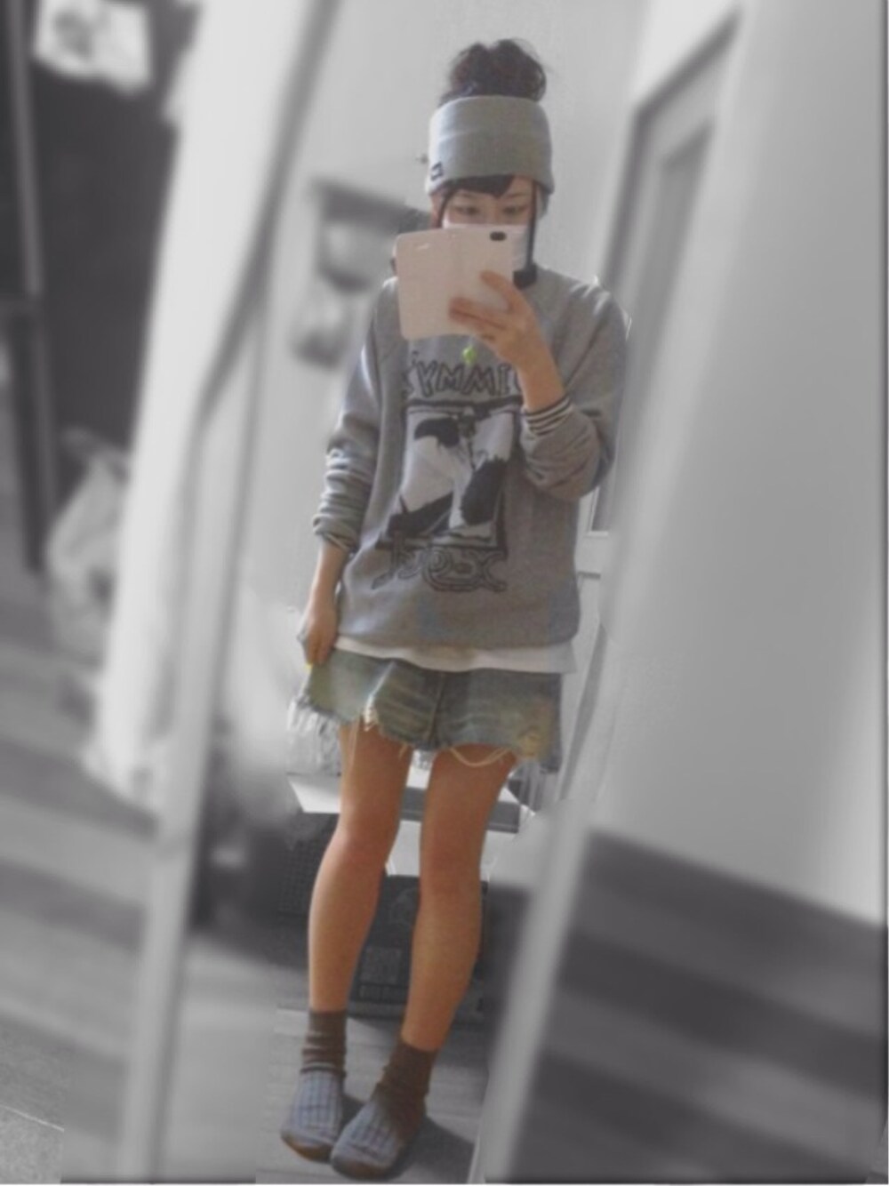 ショートにしてから初めてのおだんご! ヘアバンド活用したくてしちゃいました、、笑