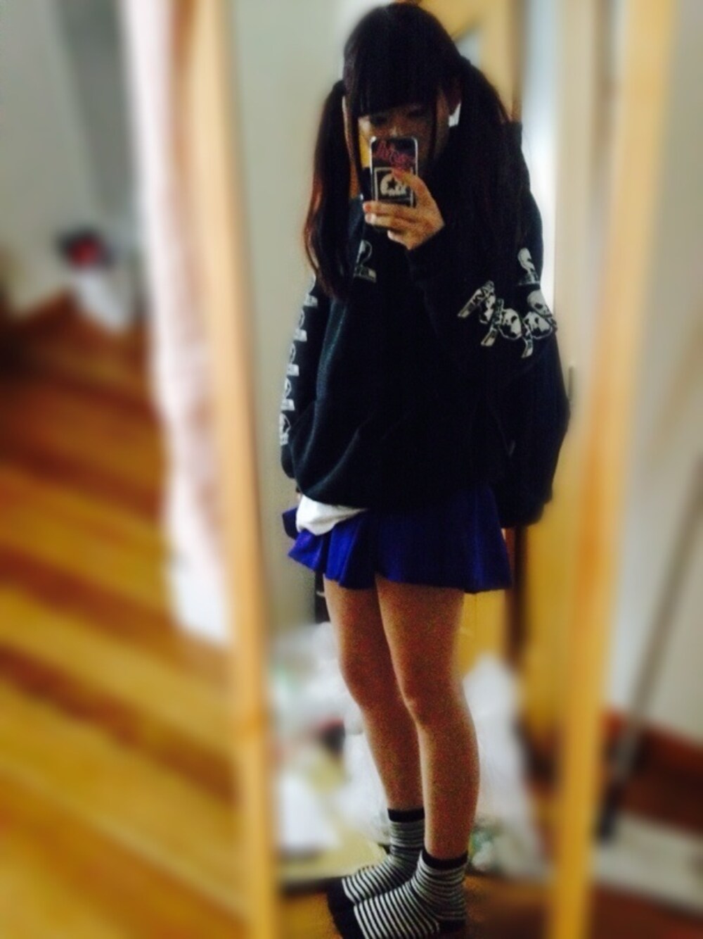 パーカー▷NADIA(SKULLSKATES) スカート▷WEGO めっちゃありきたりですが🙏💦 最近は生足でも全然寒くなくて快適です✨