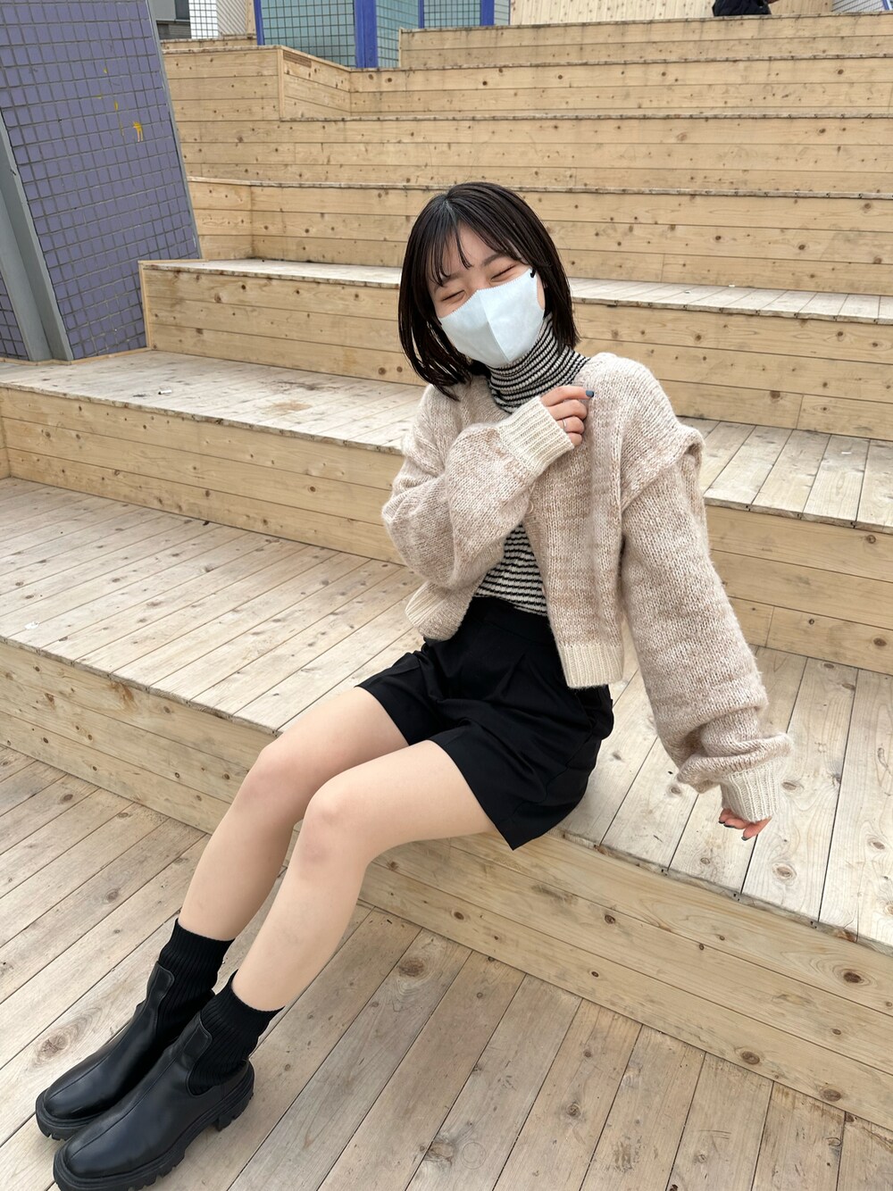 ゆるだぼのトレンド感も好きだけど、 時にはミニ×ミニで着たい…❕ 最近はボーダーのハイネックを入れるのが マイブームみたいです🦓