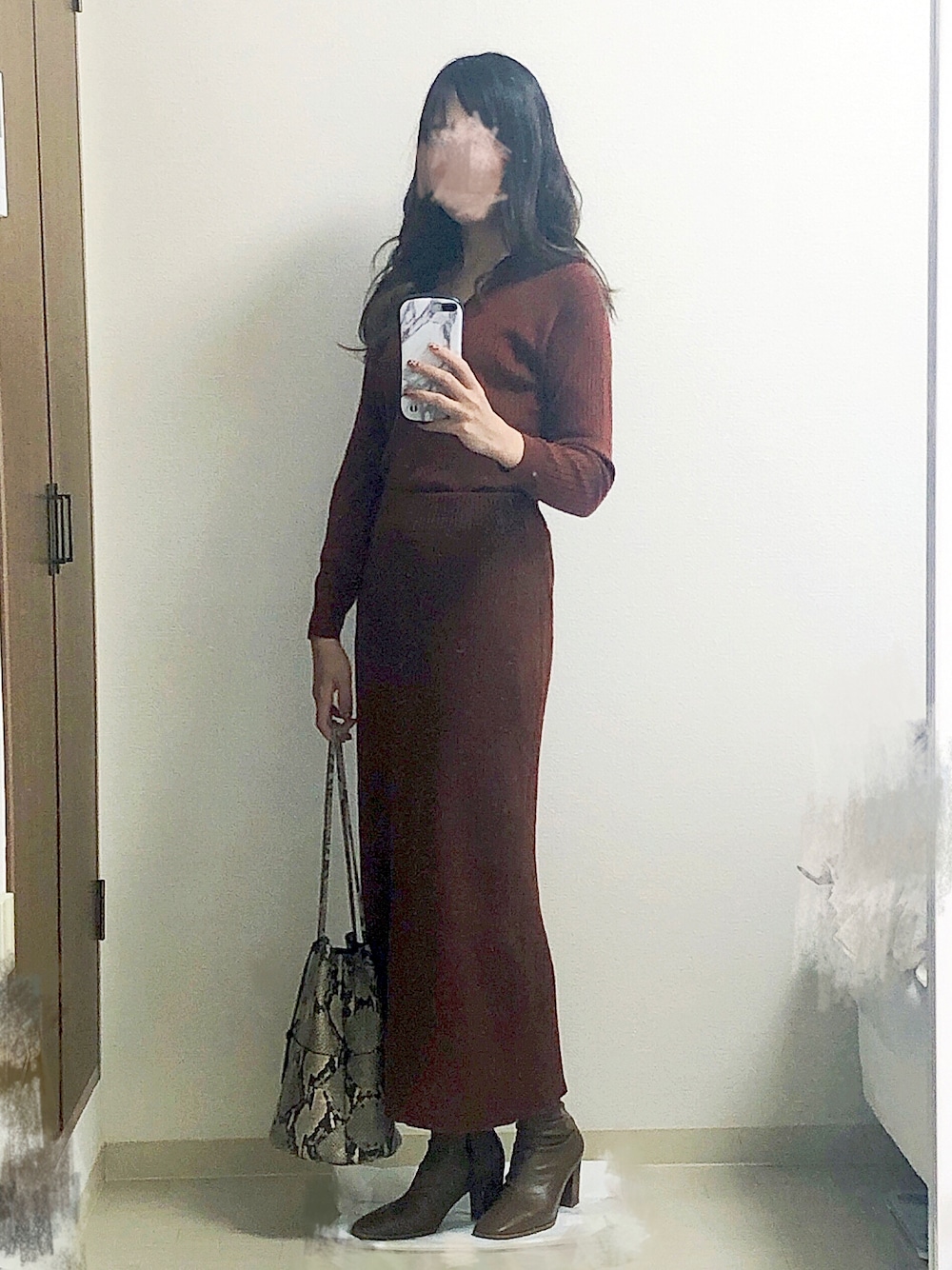Harのスカート「前後2wayタイトロングニットスカート」を使ったコーディネート