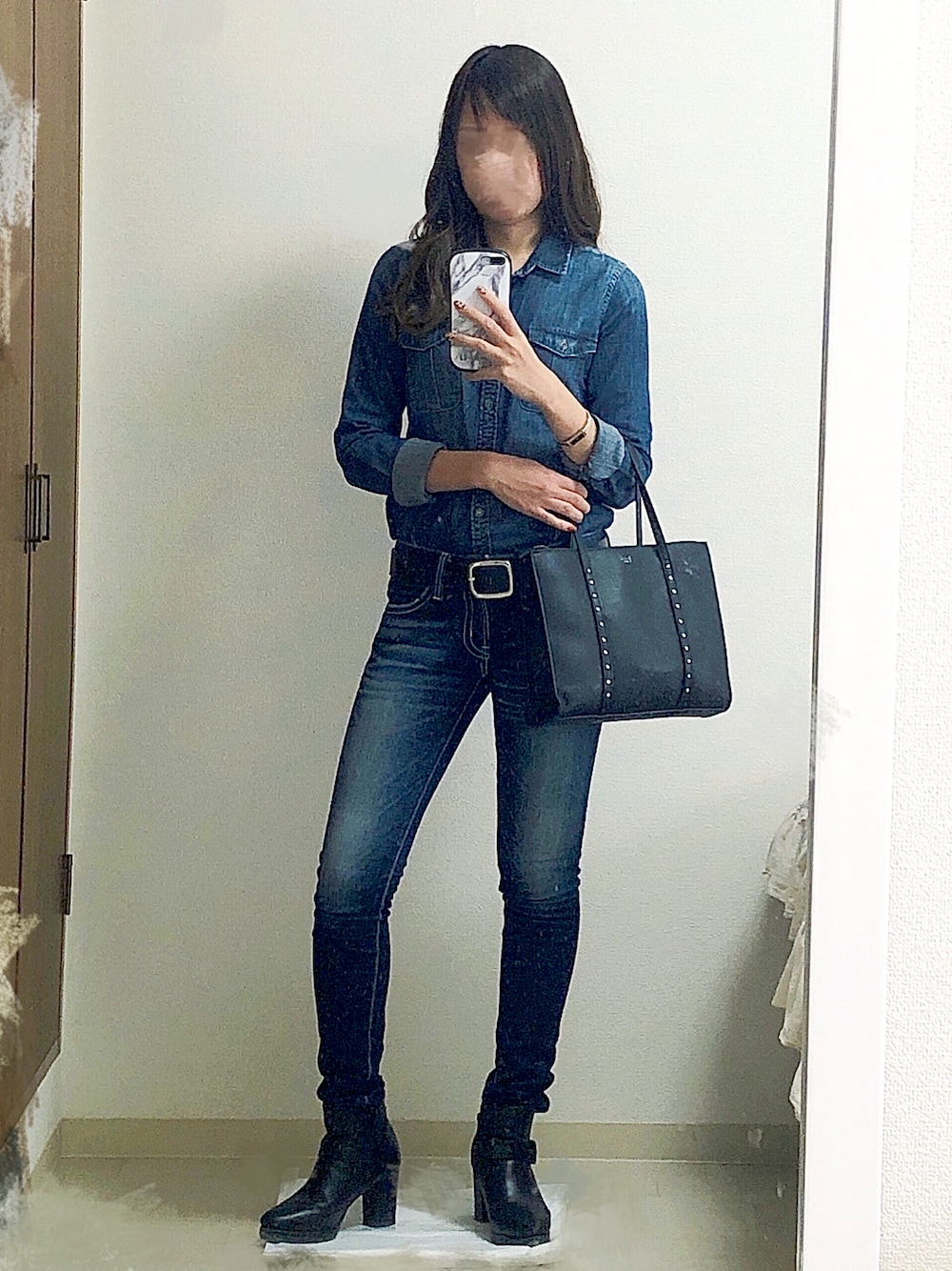 2021.11 すみません🥲 投稿し直します🙇🏻♀️ デニム✖️ブラック の組み合わせが好き👖⛓ ⭐︎ローライズはお尻が小さく見える ⭐︎ハイライズは脚が長く見える みたい✍︎📓𓏸𓈒𓂃 いつもいいね、お気に入り ありがとうございます🐭♡