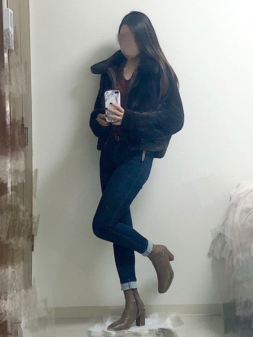 2022.1 ブラウンの気分🐻 スキニーデニムに ショートブーツを合わせる時は ロールアップにすると 馴染む気がします🥨💭 いつもいいね、お気に入り ありがとうございます🤎