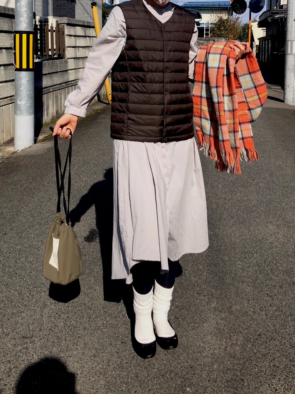 近所のパン屋さんまで🥯🥐 靴下はユニクロのメンズ🧦 風が強かったからユニクロのウルトラライトダウンコンパクトベストを2枚重ねて✌️中には去年買ったレディース仕込んでます。上には昨日買ったメンズのブラウンを。
