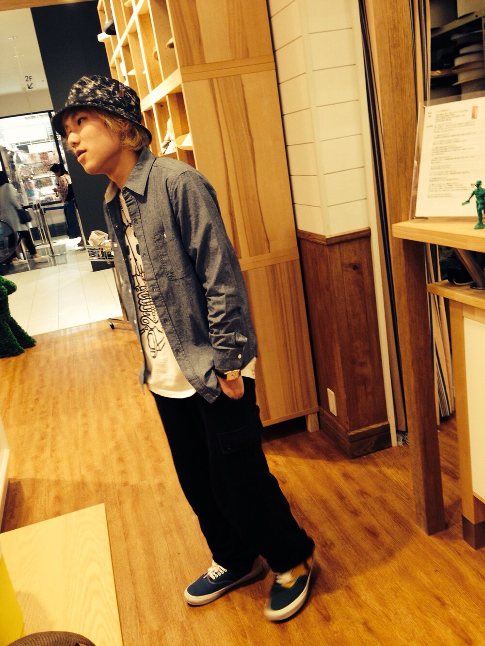 デニムをウォッシュ加工したような…。 つばの長さもちょうどよく、僕の持ってるバケットの中でも1番と言ったら言い過ぎかも知れませんが、そのくらい調子いいです。 かぶりやすいです( ´Д`)y━・~~ あ Tシャツの骨みたいのはgraniphです。
