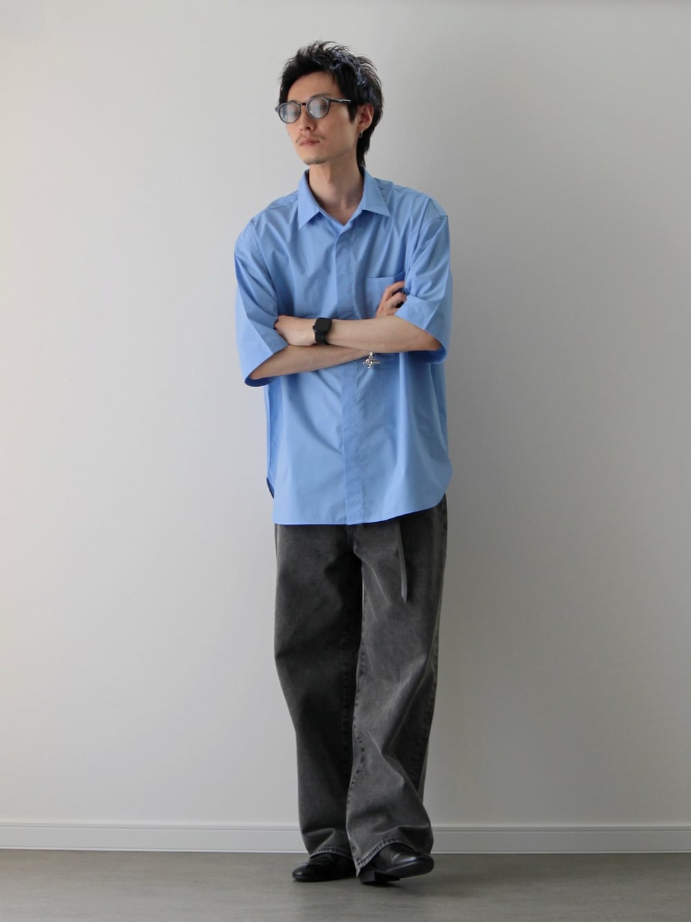 上下GUのプチプラコーデ! ブルー×グレーの合わせ方に最近ハマっています😙 ゆったりシルエットがイイ感じです👕👖 Instagram☞sawataro_