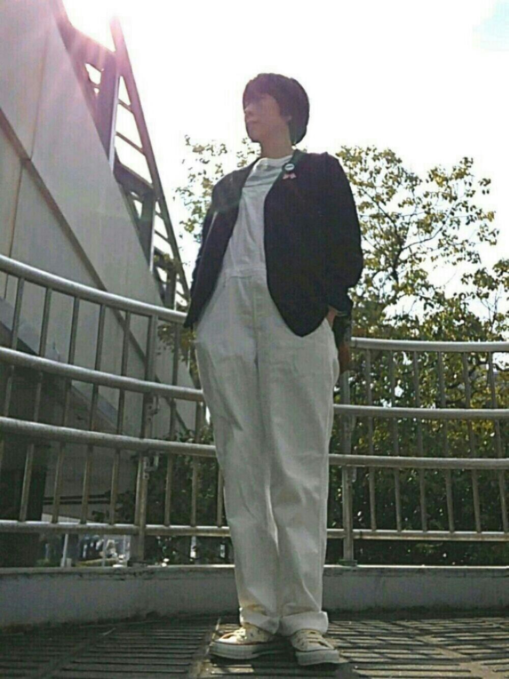 こんにちは☺ せっかくホワイトデーで買っておいた チョコレートを相方さんが忘れる、 あわてて追いかけた一日の始まりでした。 白のオーバーオールに無印良品のグレ― ボーダーTにメンズMサイズのニットジャケットを ハーフコートの代わりに着てます。 いつも見てくださりありがとうございます。☺ 感謝いたします。☺🍀