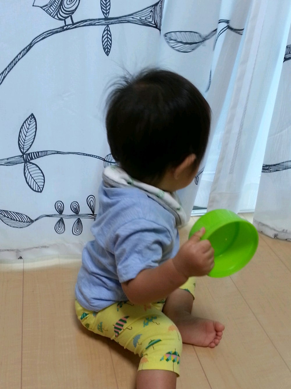 雨の日は傘柄のスパッツ 雨の音が気になるようで窓から離れません(^^)
