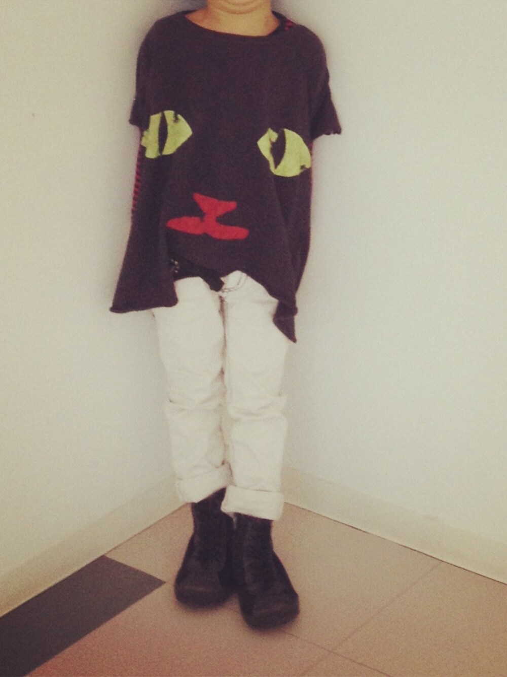 ネコな日 ゴートゥーハリウッドのTシャツ FITHの白パンツ