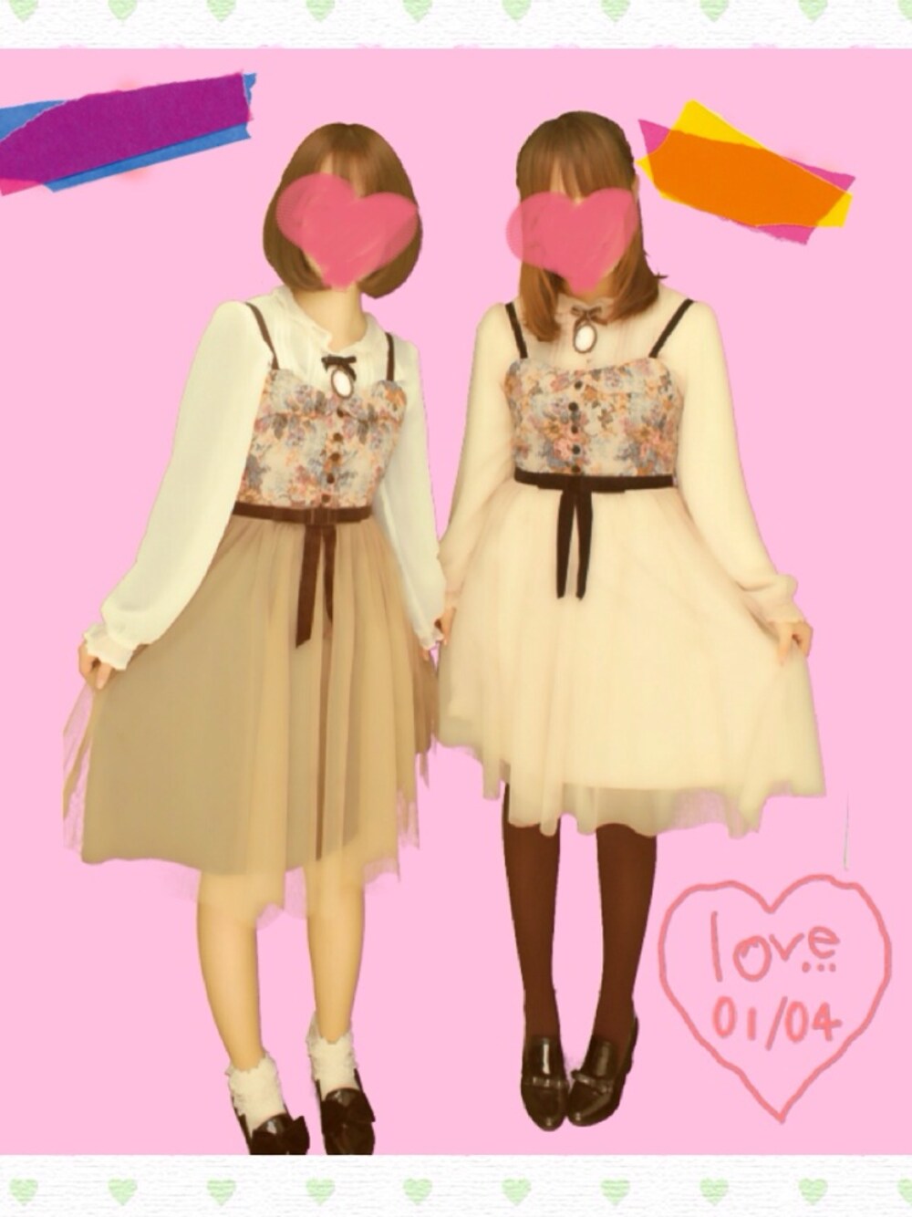01.04 友人と双子コーデ♪( ´▽`) 初売りに行きました♪( ´▽`) お気に入りのゴブランワンピに カメオブラウスで、ガーリーに♪( ´▽`)