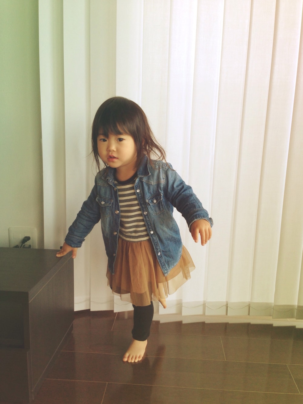 ちょけて中々写真をまともに撮らせてくれない娘 ずっと喋り続けてる、、、、。゚(゚´д`゚)゚。 弟のお宮参り用に買ったワンピース、 今年でサイズアウトかな★