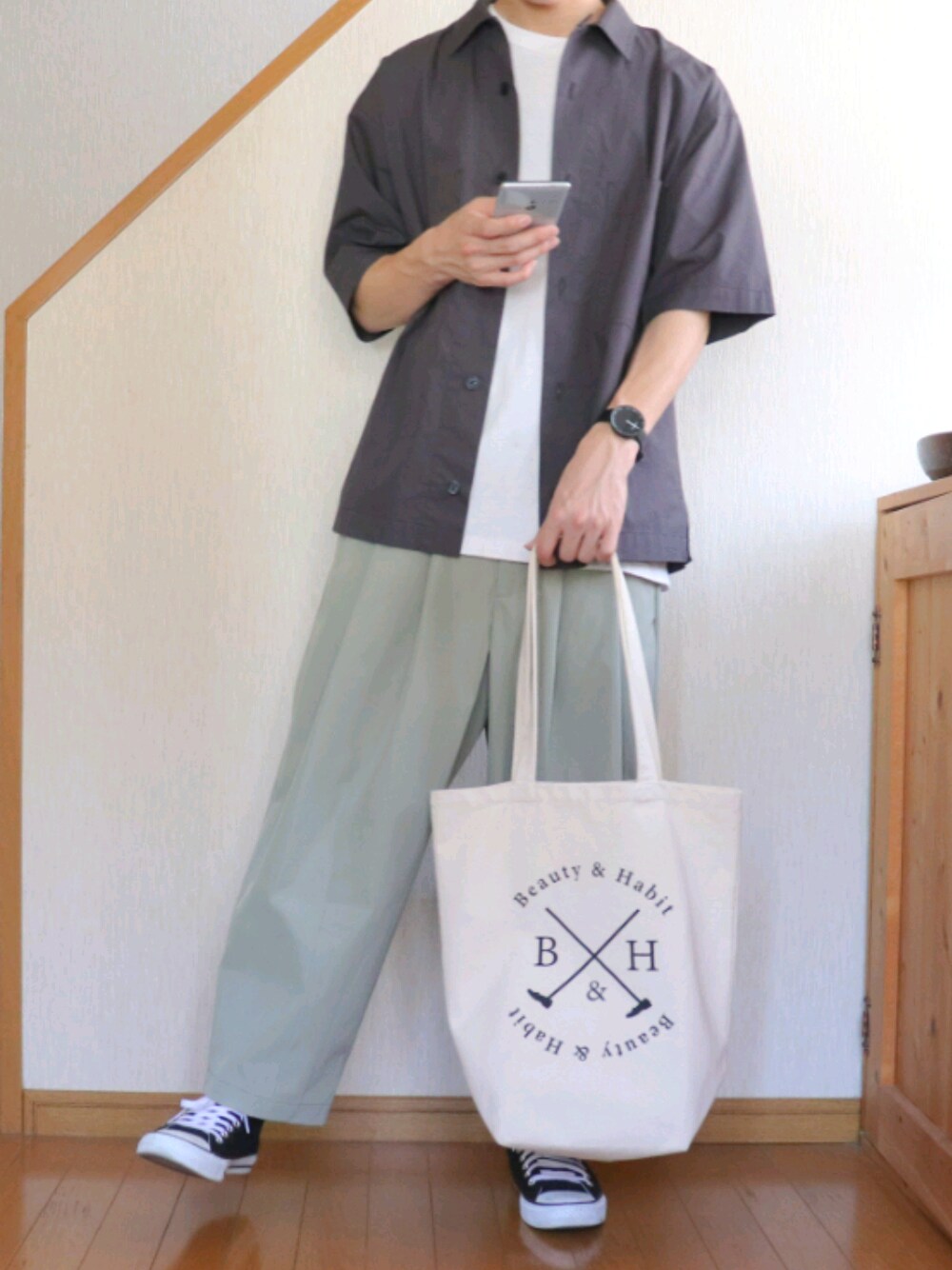 みなさんこんにちは~ いつも見ていただきありがとうございます🙏 remerコーデ③ シンプルにシャツと組んでおります このシャツ意外としっかりしていてかつ着やすいです 相変わらずくすみカラーが最高です◎