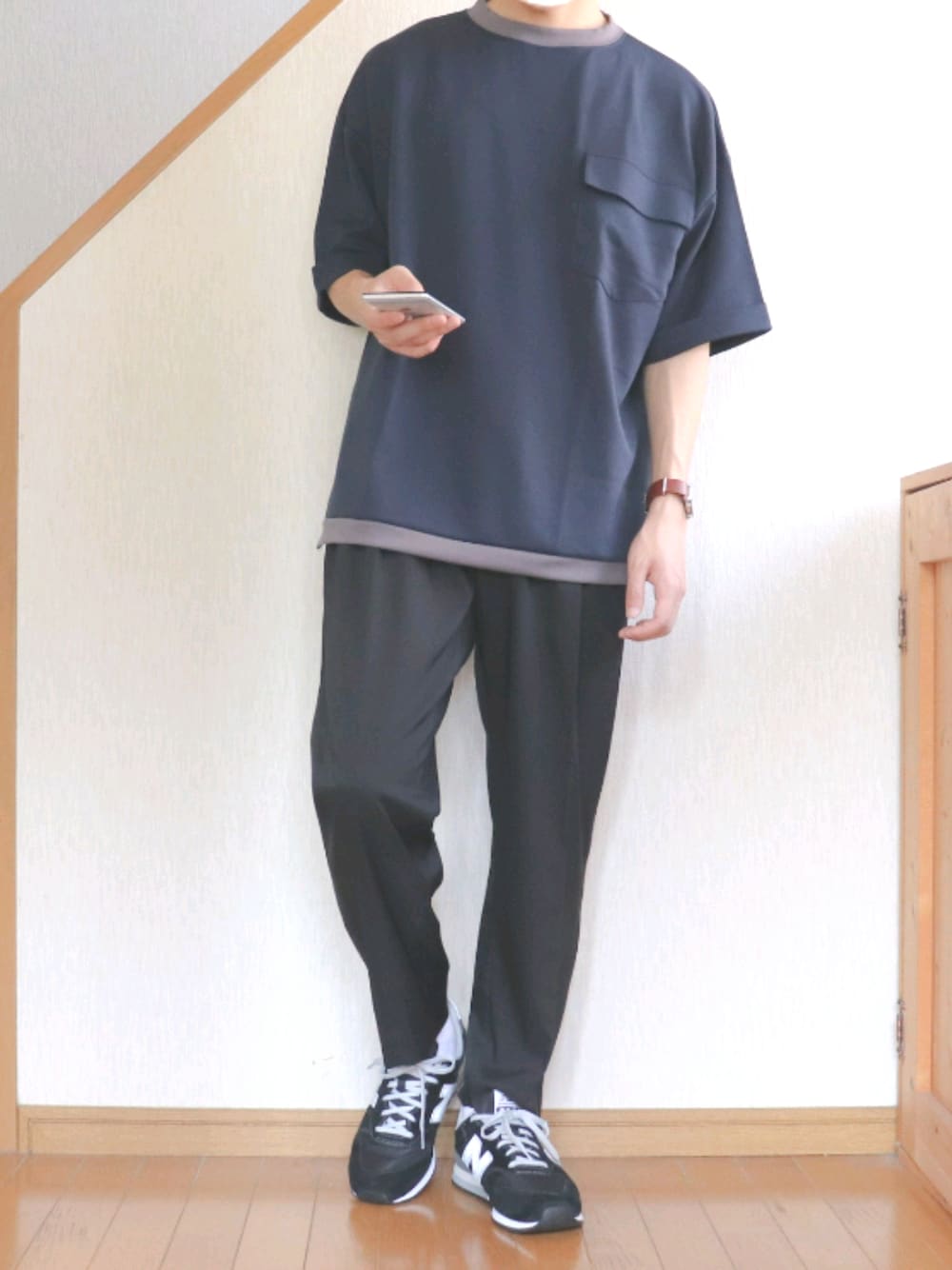 みなさんこんにちは~ いつも見ていただきありがとうございます🙏 今日は先日購入したDOOPZのTシャツコーデ Tシャツのネイビー×グレーが良いです◎ WYMのスラックスもめちゃ履きやすい~ Instagramにも良ければのぞきにきてくたさい👍