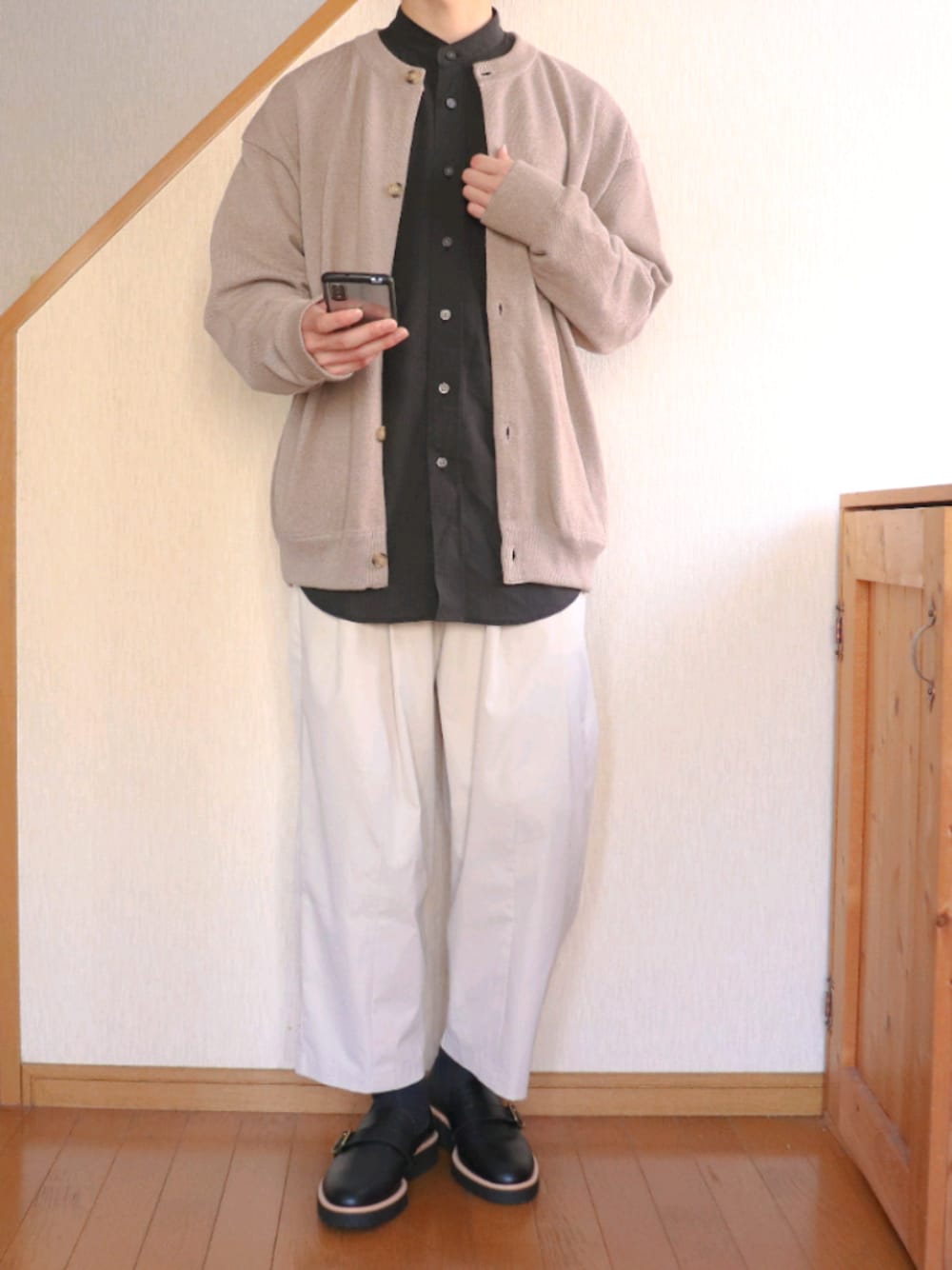 ひでのカーディガン/ボレロ「Crepuscule / 別注 クルーネック カーディガン」を使ったコーディネート