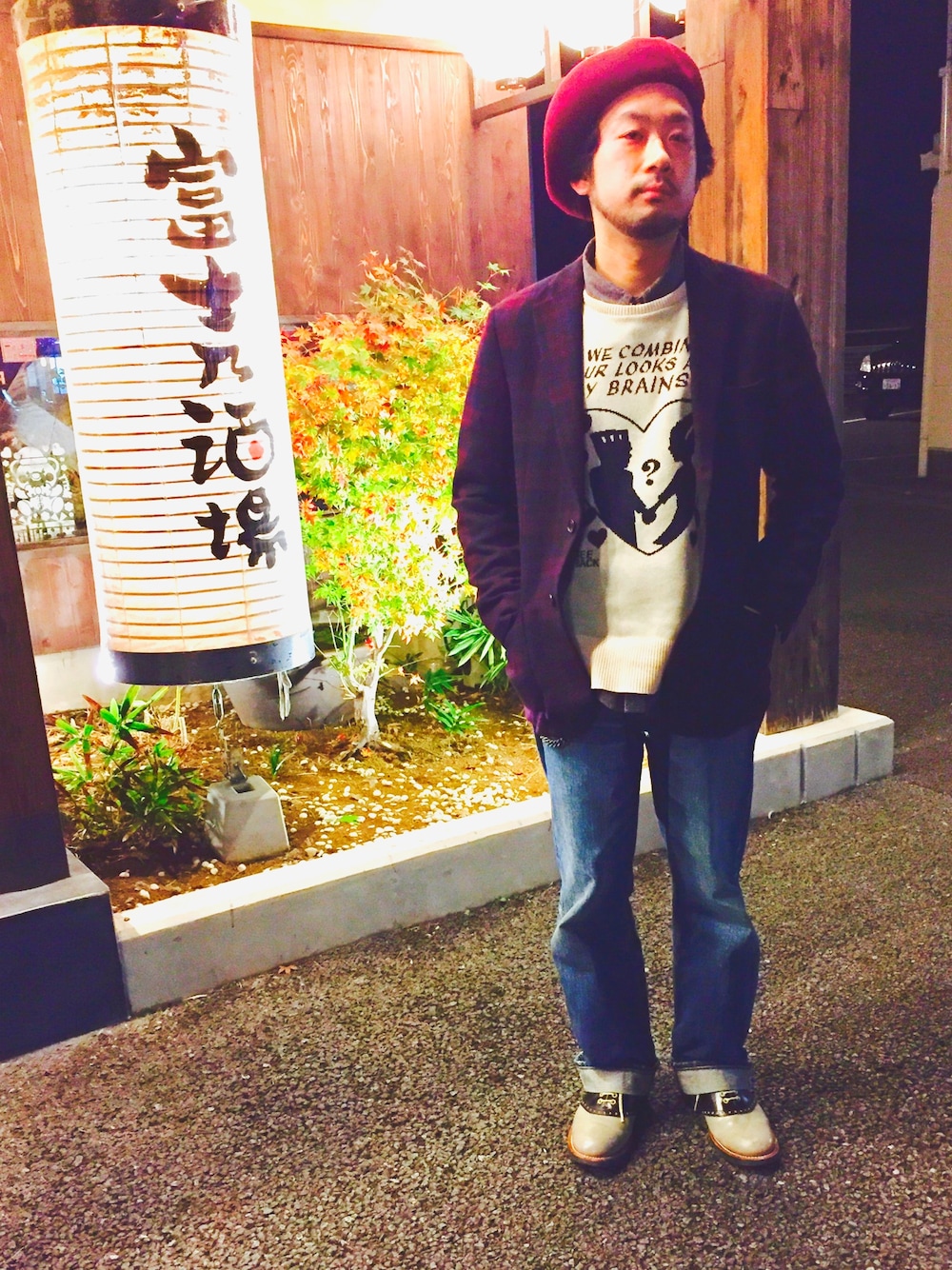 弟と2人で近所の居酒屋へフラッと一杯🍺 dog&co.のベレー、気に入りすぎて色違いのワインも思わずゲット🎵 キュートなデザインのWEIRDOのニットと念願の共演です笑 とりあえず、酔っ払いです😆😆😆