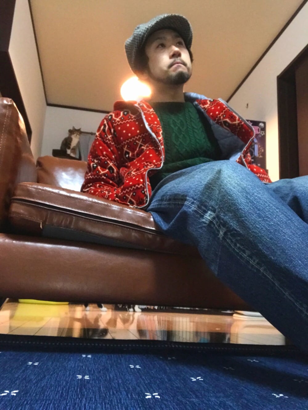 メリークリスマス🎄🎅 クリスマスカラーしてみました笑 今日はこれで出かけます♫😆 たまたま写り込んだペットたちも紹介しときます😊🐈 では、よいイヴを🎉